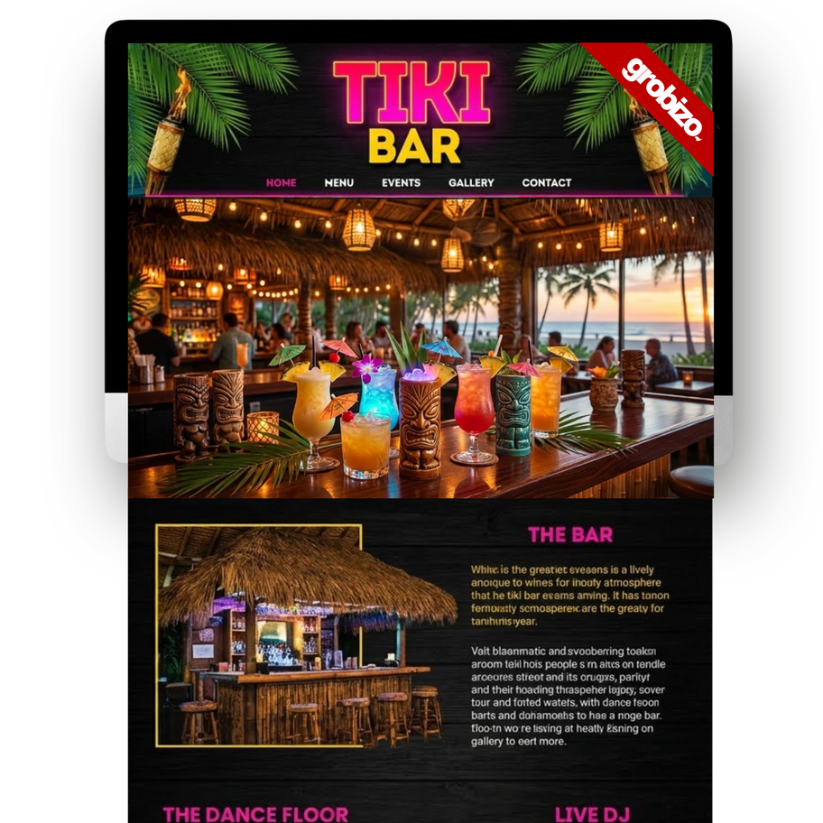 Cast off to the island vibes with the Tiki template, a vibrant and dynamic e-commerce and event solution for your island-themed bar and restaurant. This template is designed to immediately transport visitors to a beach side paradise, using lively colors, lush tropical imagery, and a mobile-optimized layout that gets guests in the mood for rum, rhythm, and relaxation.